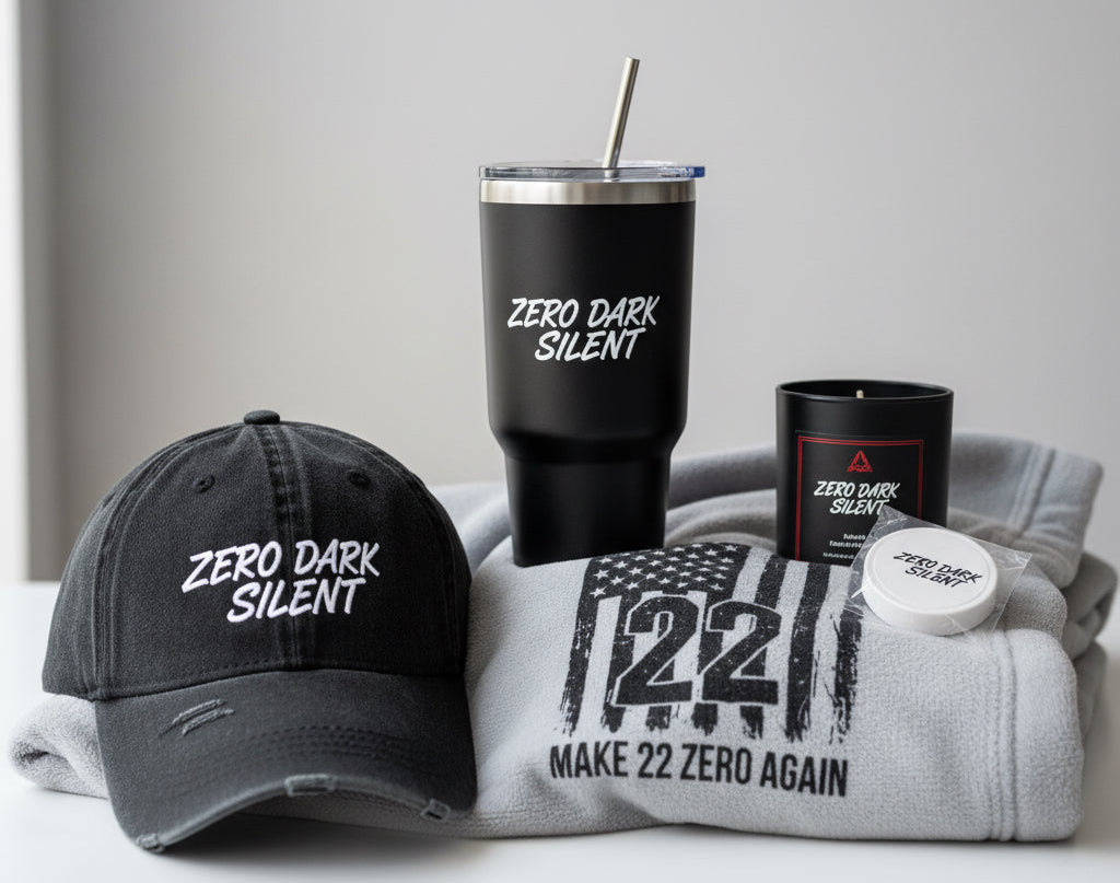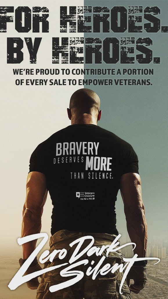 Zero Dark Silent is dedicated to raising awareness around veteran suicide and mental health issues. Our brand exists to break the stigma, encouraging active-duty service members and veterans to speak openly about their struggles. Beginning January 2026 we will donate a portion of every sale to effective organizations like Wounded Warrior Project and Operation 22 til Freedom that focus on enhancing the quality of life for struggling veterans.